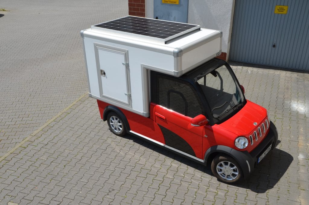 The electric transporter used in Drensteinfurt is an ARI 458 Box L. This has a loading space with a length of 149 cm, a width of 125 cm and a height of 110 cm. This means that more than 2.1 m³ volume is available for groceries and other goods. To keep the food fresh, the vehicle is also equipped with a cooling system in the case that can be controlled individually. This version is now available as the ARI 458 Cooling Van.
