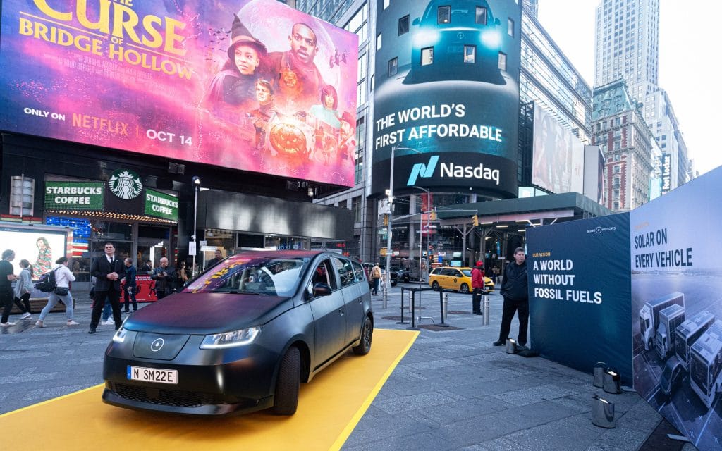 NEW YORK, 11 October 2022 – Sono Motors (NASDAQ: SEV), the Munich, Germany-based company pioneering solar mobility, today kicked off its “Celebrate the Change” U.S. tour in New York City with the debut of its solar electric vehicle (SEV), Sion, at Times Square. Sono Motors believes that the 5-seater passenger vehicle, which is expected to retail in Europe for approximately €25,000 ($25,000), has the potential to become the world’s first affordable SEV. Start of production for the Sion is planned for the second half of 2023.